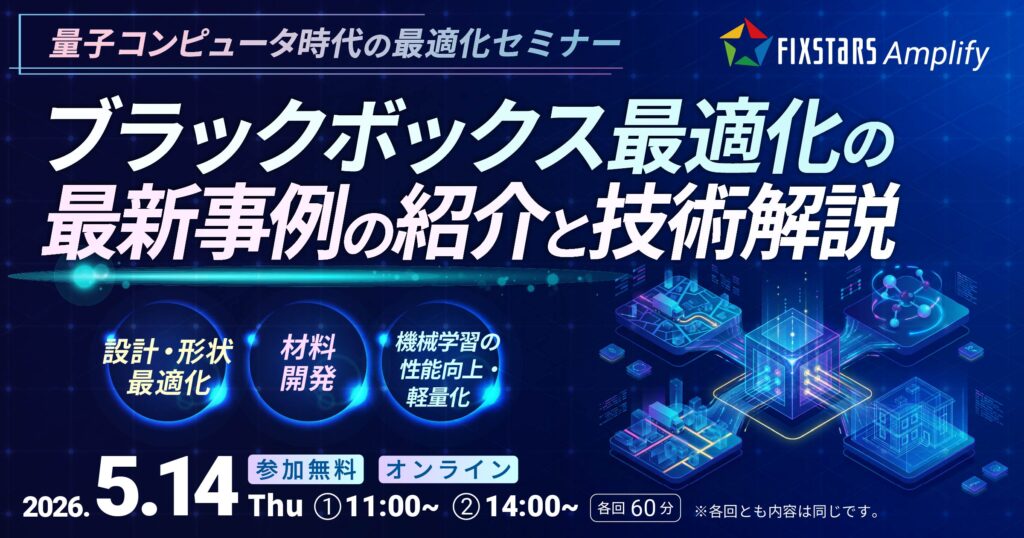 本セミナーでは、量子・量子インスパイアード型のBBO手法 (QA-BBO) を取り上げます。QA-BBOの概要をご紹介したのち、活用事例を詳しく紹介し、弊社が最近リリースしたQA-BBOを簡単に活用するための無料のライブラリである Amplify-BBOpt (v1) のご紹介及び使い方等の技術解説を行います。
