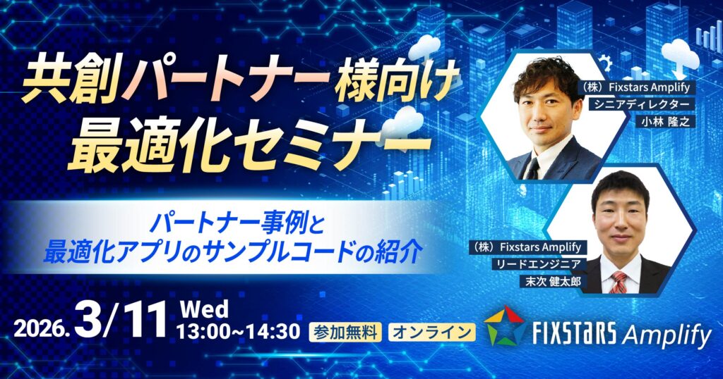| 登壇者 | 小林 隆之 株式会社Fixstars Amplify シニアディレクター 末次 健太郎 株式会社Fixstars Amplify リードエンジニア |