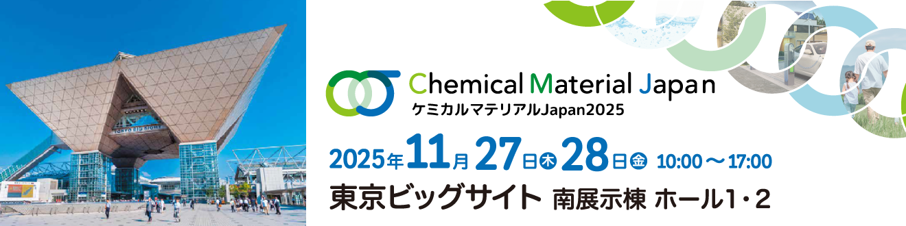 2025年11月27日(木)~28日(金)に東京ビッグサイトで開催されるケミカルマテリアル Japan 2025に出展いたします。
